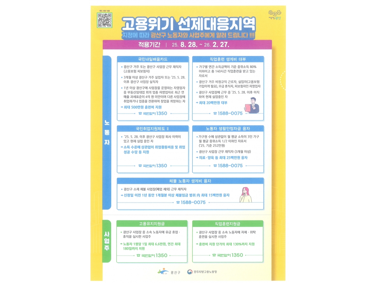 고용위기 선제대응지역 지정에 따른 지원사항
