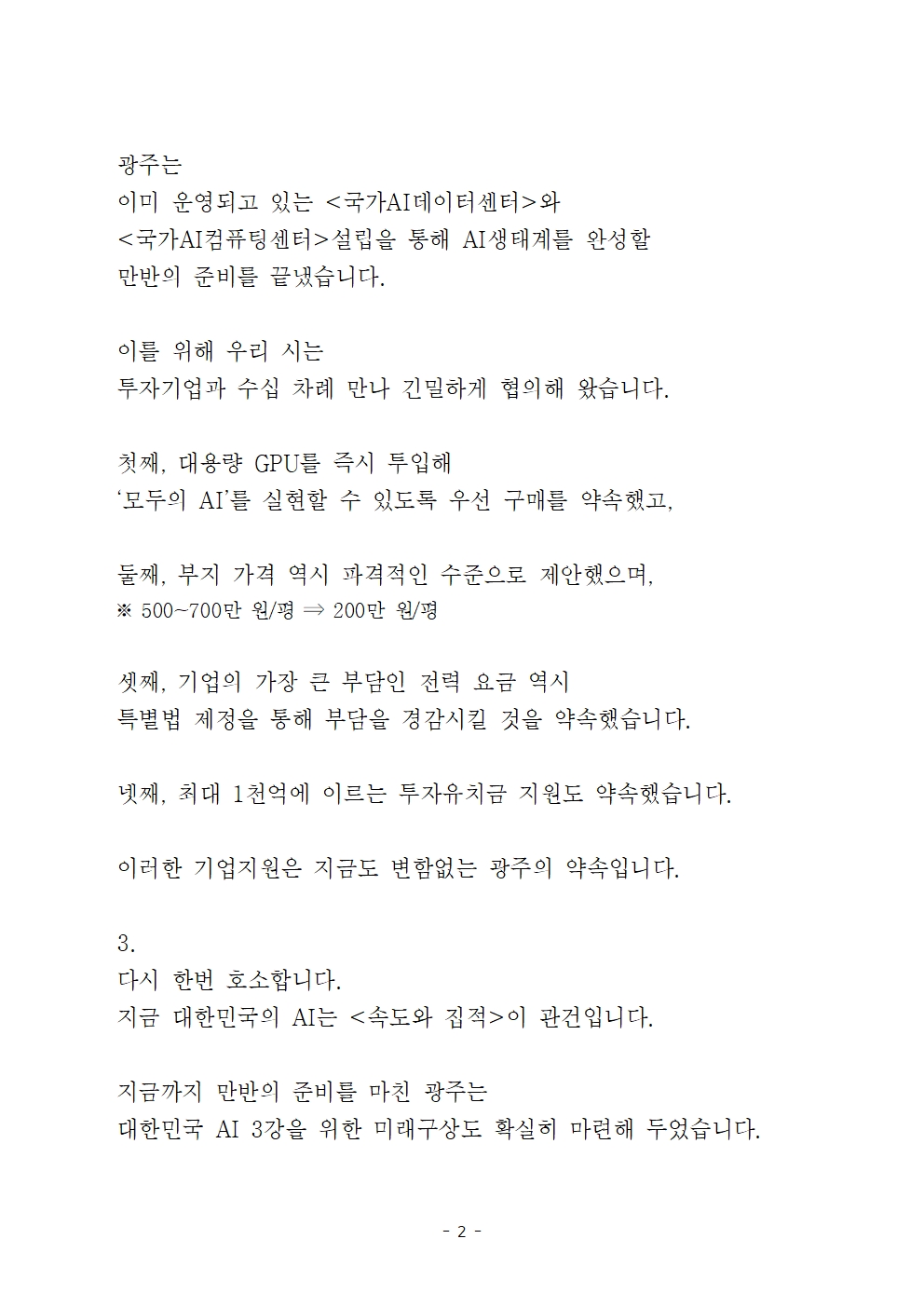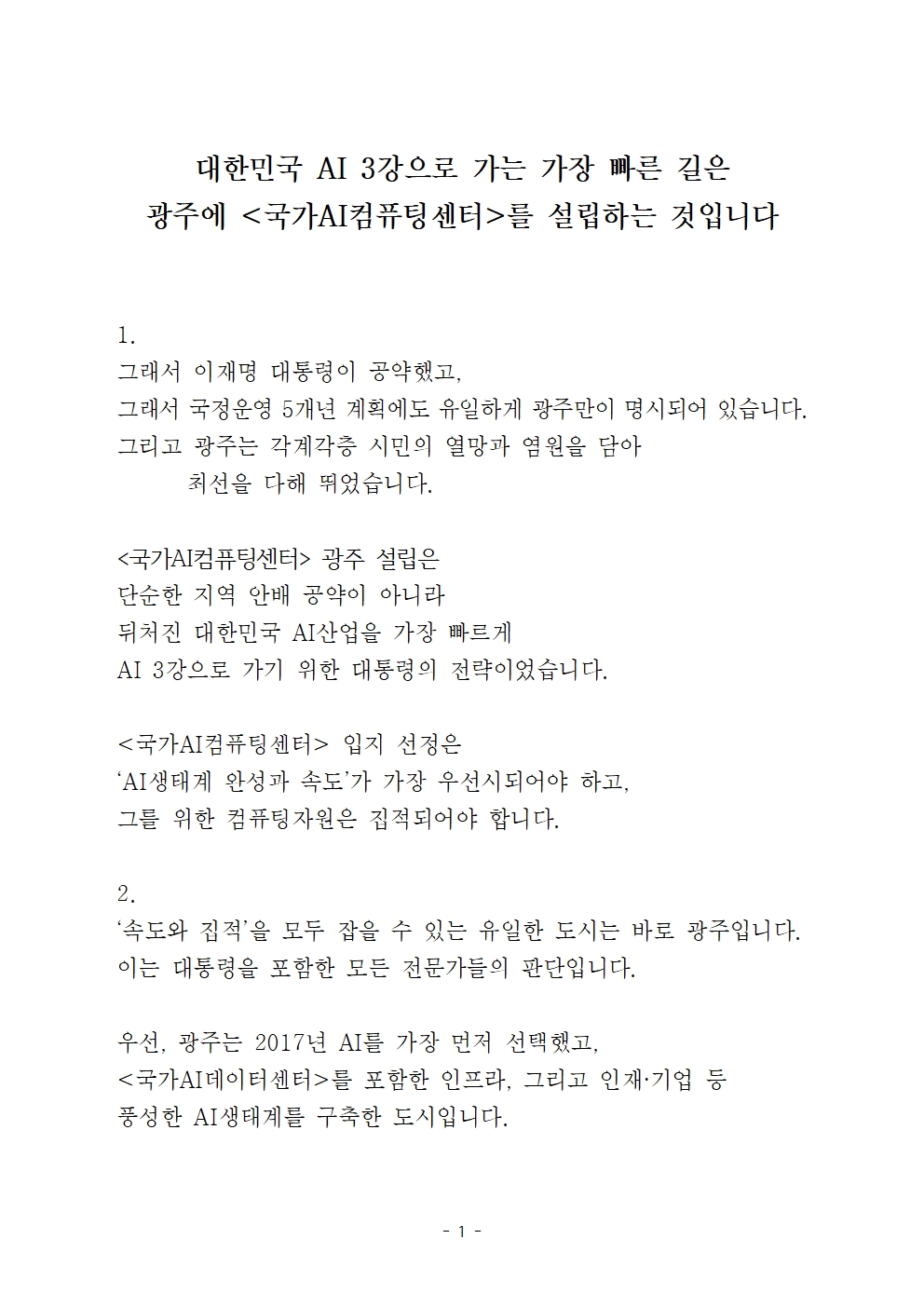 국가 AI컴퓨팅센터 광주 유치 호소문
